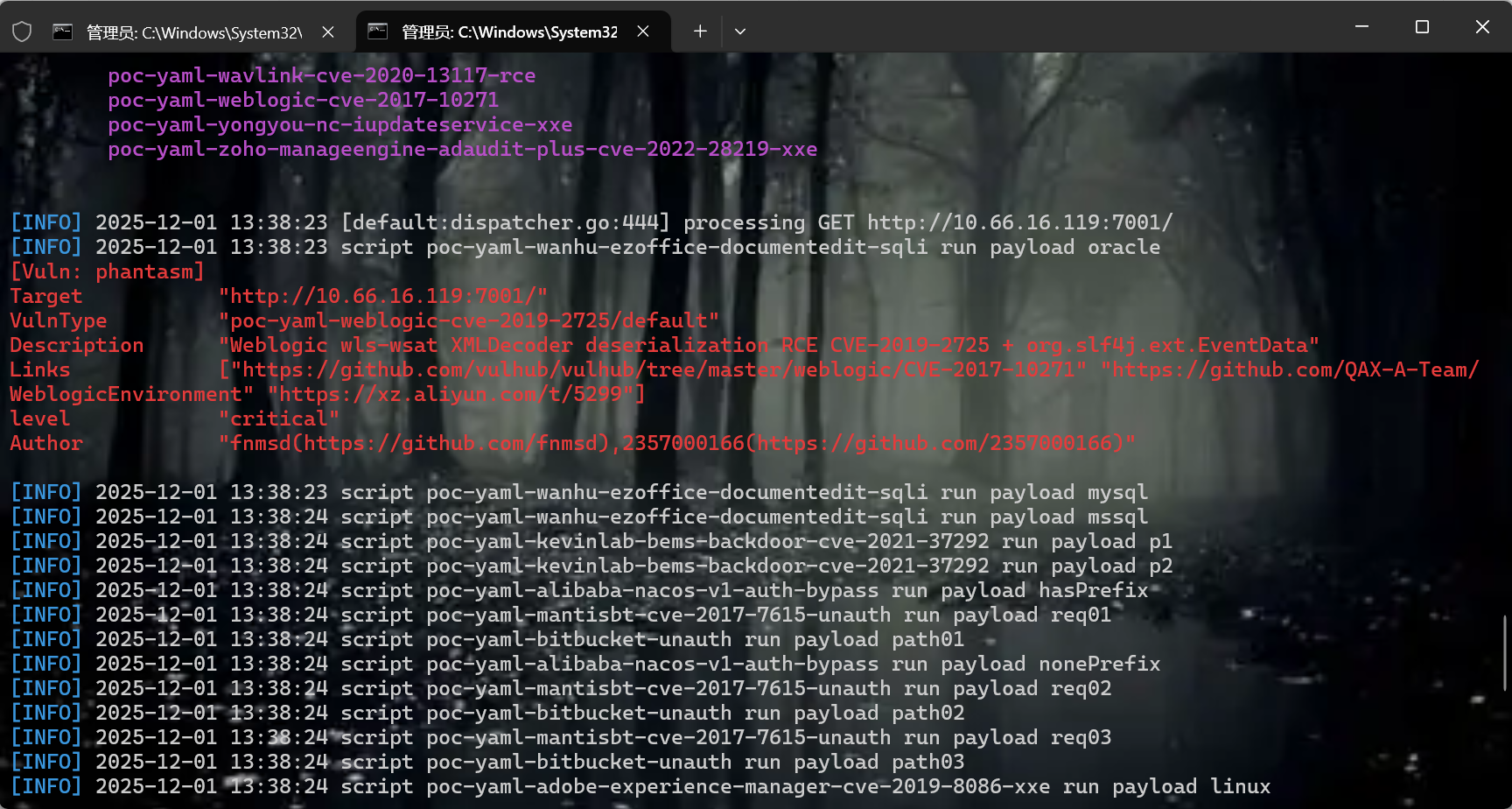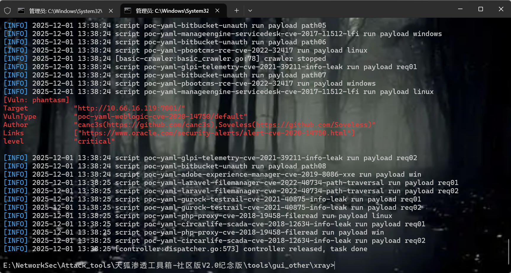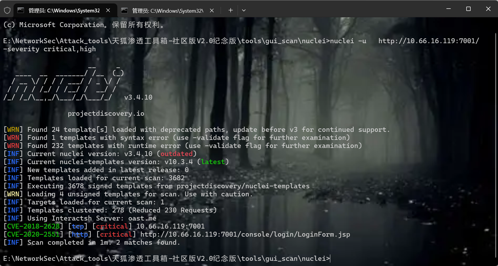 找出来两个cve,并且还是一个弱口令呢,使用xray和nuclei工具看看