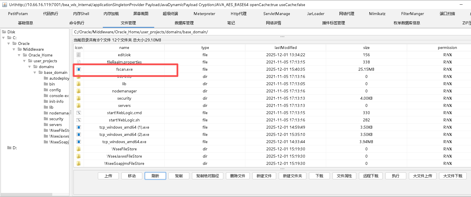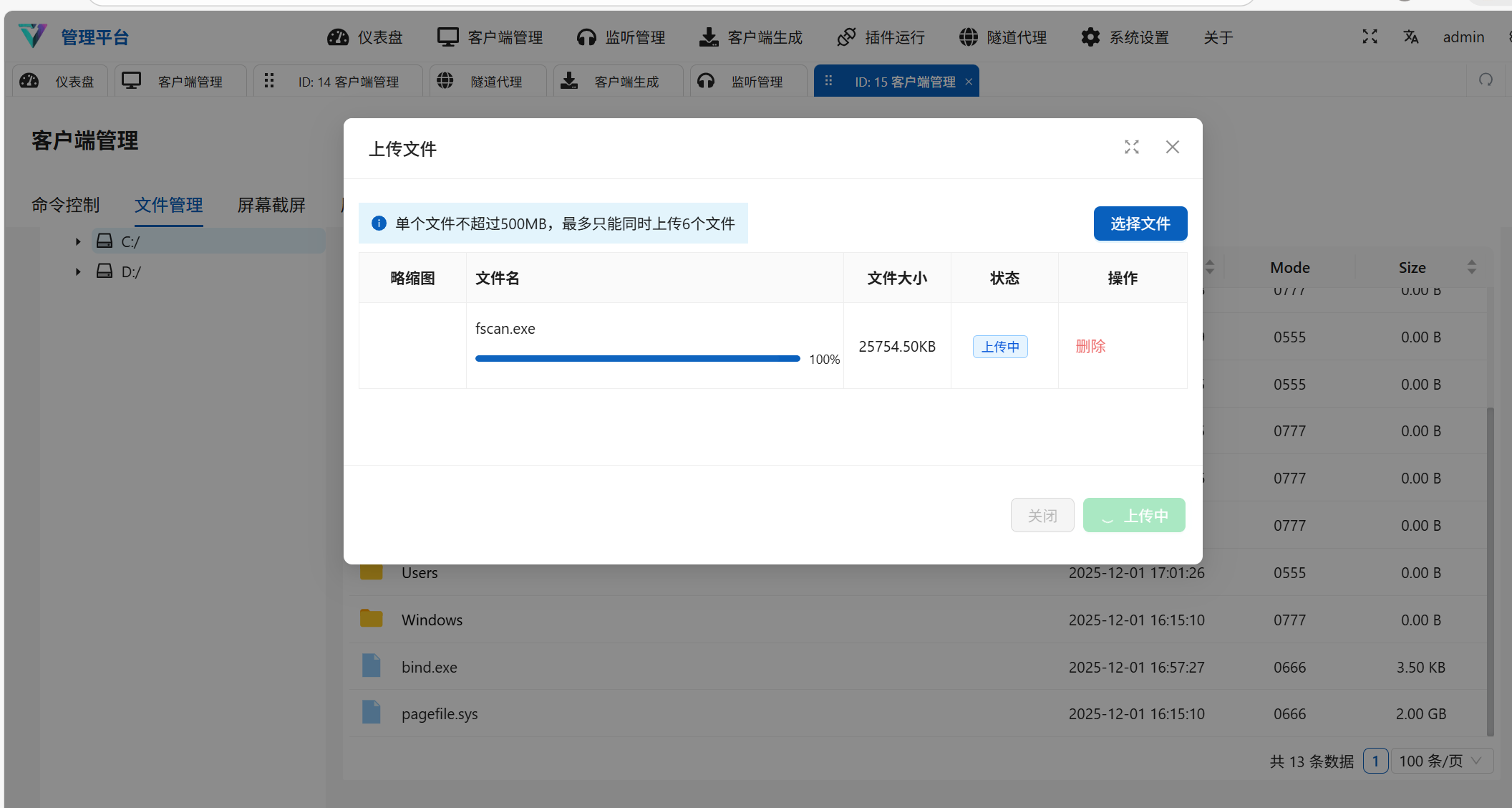 搭建socks代理,继续内网渗透,同时上传fscan扫描