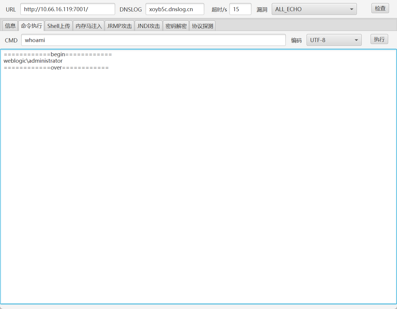 尝试利用吧,其实漏洞还是很多的,这里就按照weblogic_tools为主吧,因为它直接可以命令执行文件上传等