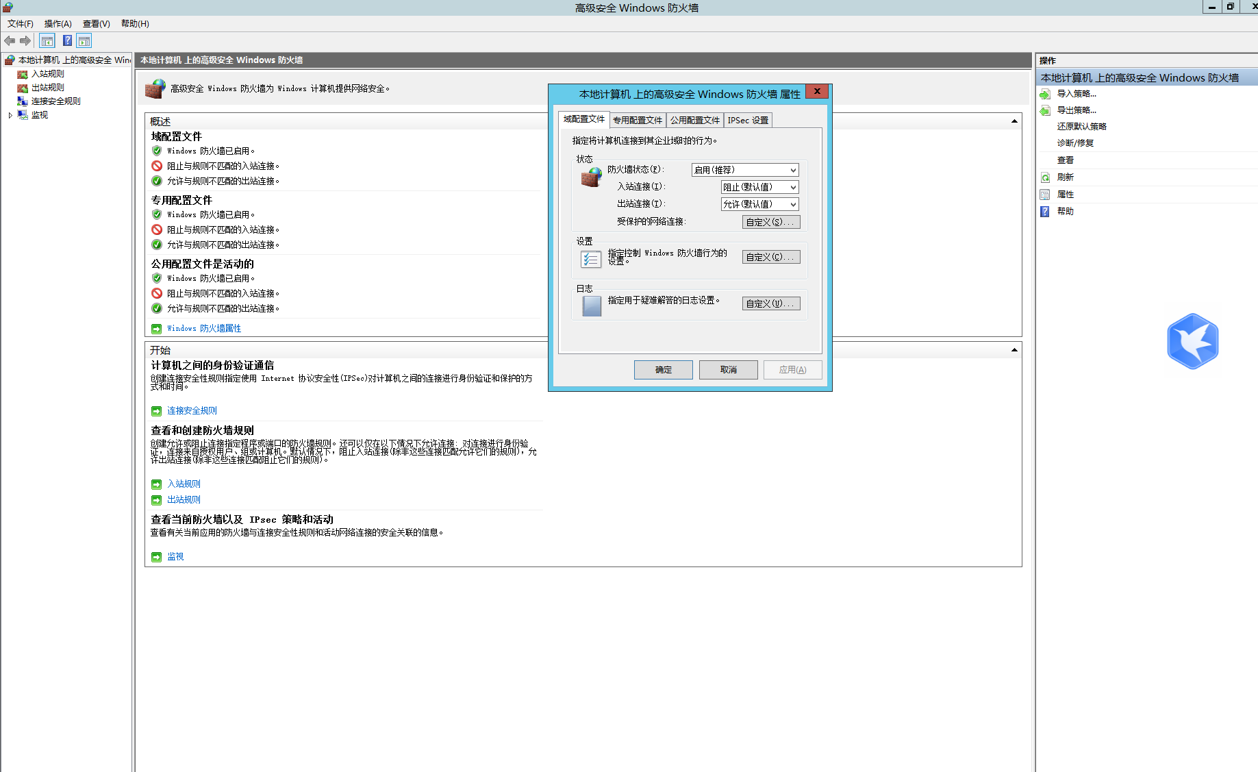 防火墙还有一个默认的策略就是默认入站拒绝,而默认出站允许