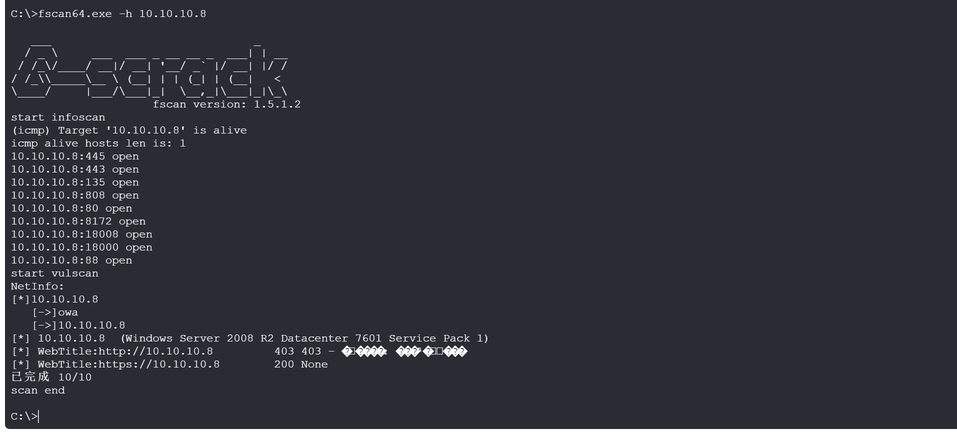 [*] 10.10.10.8 (Windows Server 2008 R2 Datacenter 7601 Service Pack 1)