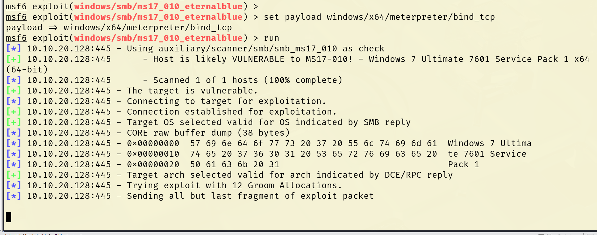 [+] 10.10.10.128 MS17-010 (Windows 7 Ultimate 7601 Service Pack 1)