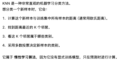 KMeans 是一种 无监督聚类算法 ,目标是把数据分成 K 个簇,使得:**同簇内的数据相似,不同簇之间差异大。**它不需要标签,而是根据数据分布自动分群。