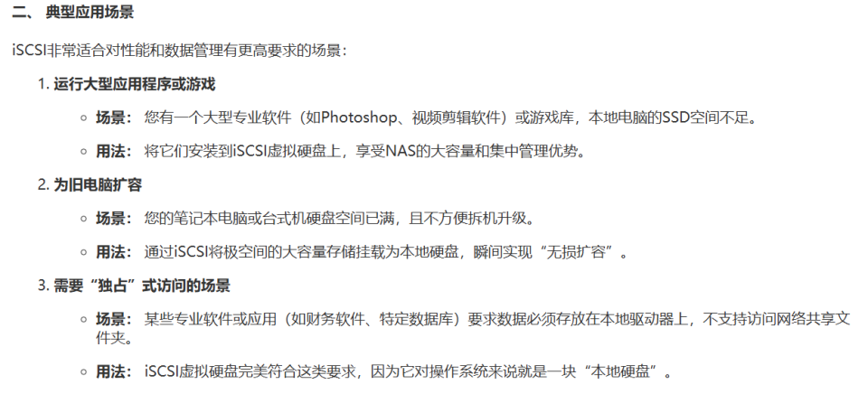 🔺关于iSCSI的作用,极空间官方也给出了三个比较常见的使用场景,个人觉得还是非常实用的。