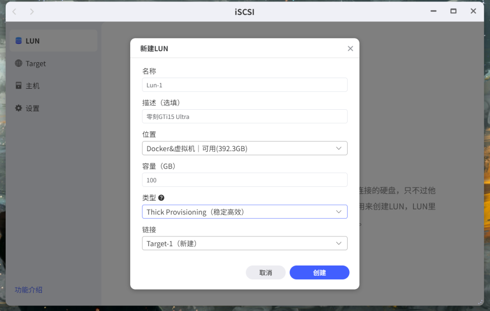 描述:对应LUN给什么设备用,比如我图中所示就是给我的零刻mini主机使用