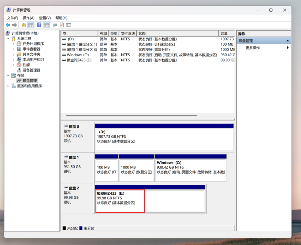 🔺回到"磁盘管理"这里可以看到它已经显示正常了!