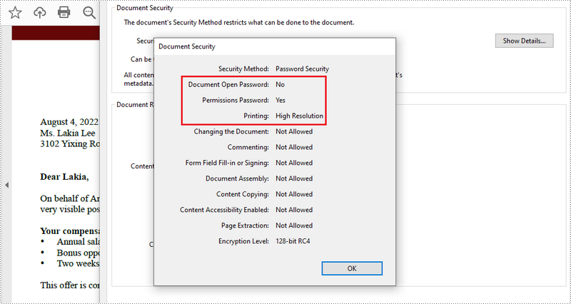 以下是在 Spire.PDF for .NET 中为 PDF 文档应用安全权限的步骤: