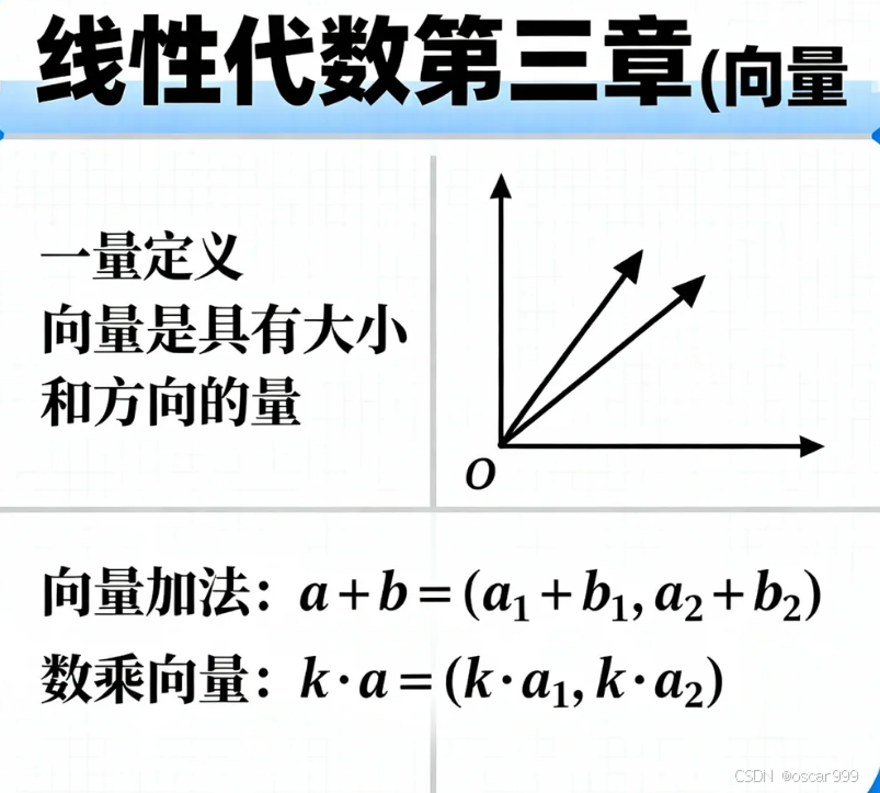 定义 :设α1,α2,...,αm\alpha_1, \alpha_2, \ldots, \alpha_mα1,α2,...,αm是一组n维向量,k1,k2,...,kmk_1, k_2, \ldots, k_mk1,k2,...,km是一组实数,则