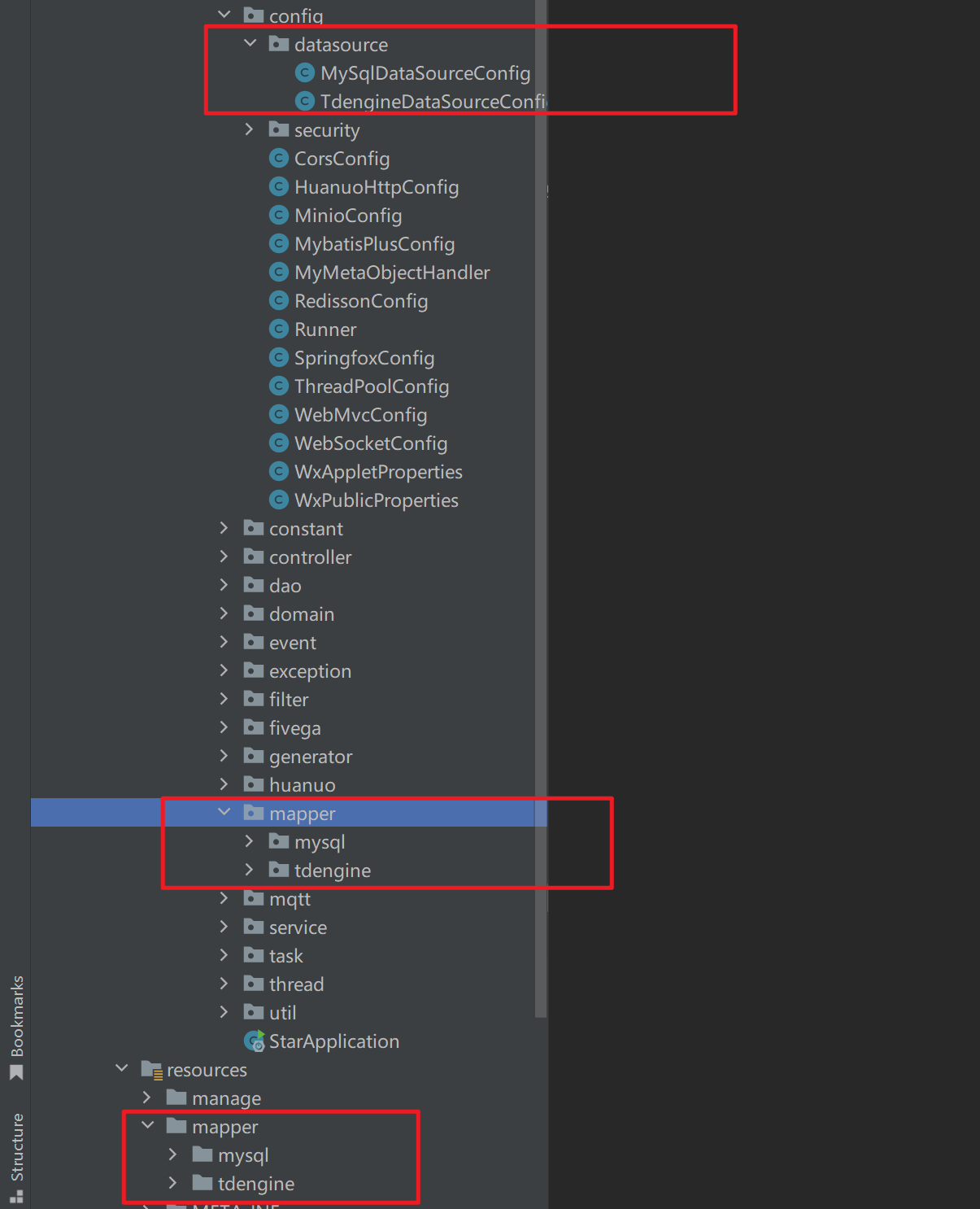 业务代码根本**无感知数据源差异 ,**这就是并存方式最爽的地方。项目结构就如下: