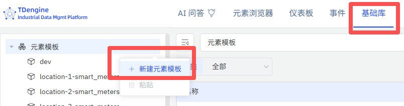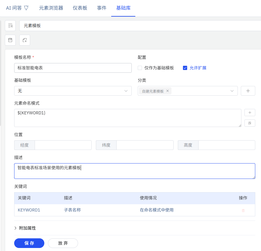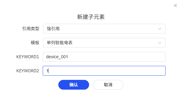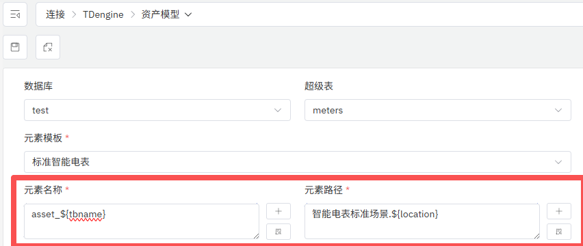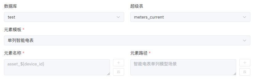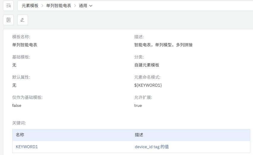 创建元素模板 "单列智能电表" ,我们使用 device_id 这个 tag 的内容作为元素名称