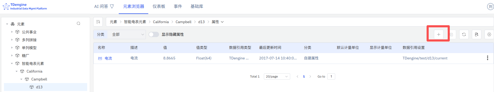 | d1 | 单列模型自定义元素-1 | 无关联单列模型场景.设备 | c0 | 属性2 | TDengineMetric | |||