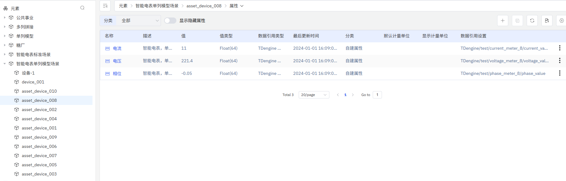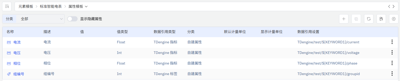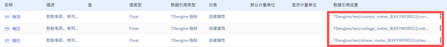 | test | meters | 标准智能电表 | asset_${tbname} | 智能电表标准场景.${location} | phase | 相位 | TDengineMetric |