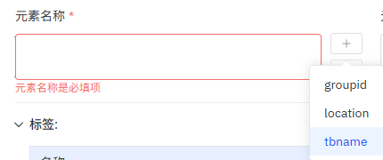 点击 + 按钮,可以选择元素名称需要涉及的表字段(tag 列与子表名)