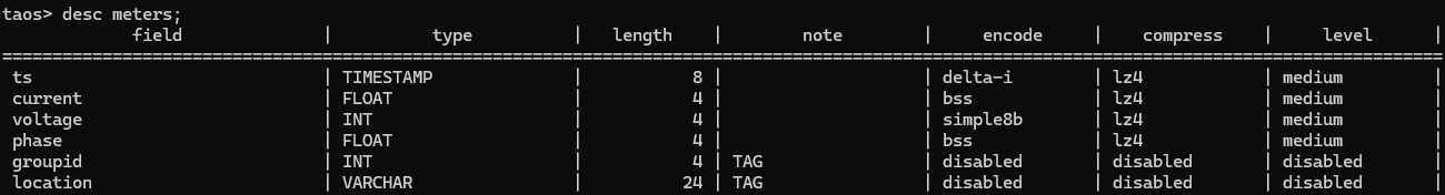 CREATE TABLE current_meter_5 USING meters_current TAGS ('device_005');