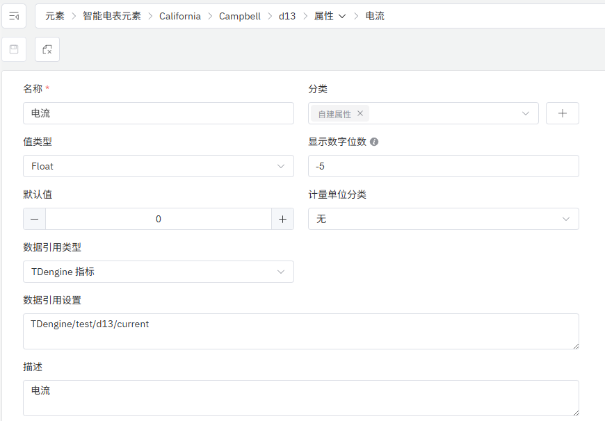 | test | meters_current | 单列智能电表 | asset_${device_id} | 智能电表单列模型场景 | current_value | 电流 | TDengineMetric |