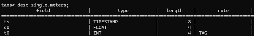 CREATE TABLE current_meter_4 USING meters_current TAGS ('device_004');