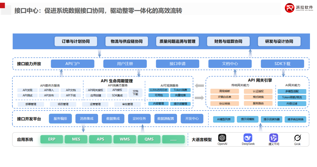 接口中台解决的是"系统和系统之间的数据交互"问题------对内打通ERP/MES/CRM等异构系统;对外保障供应链、合作伙伴接口安全。