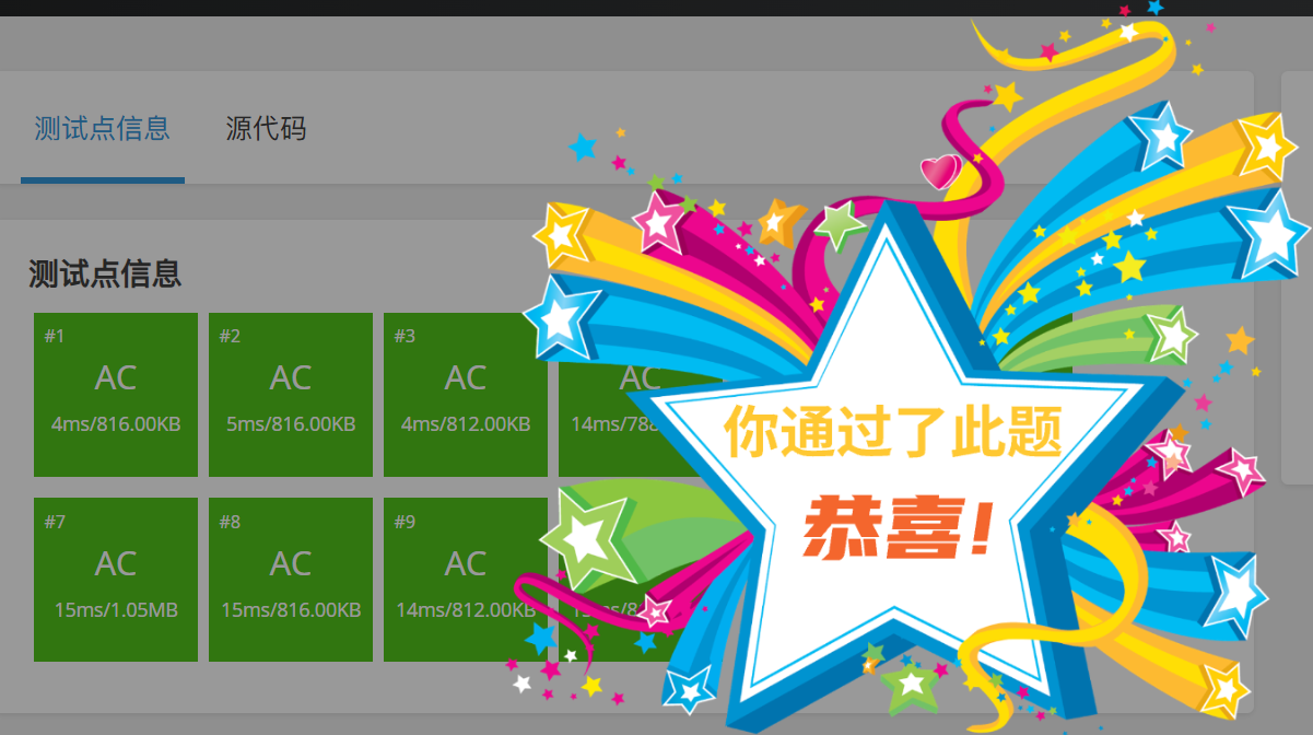 现在我们将这段代码再提交到洛谷上面看看测试结果: