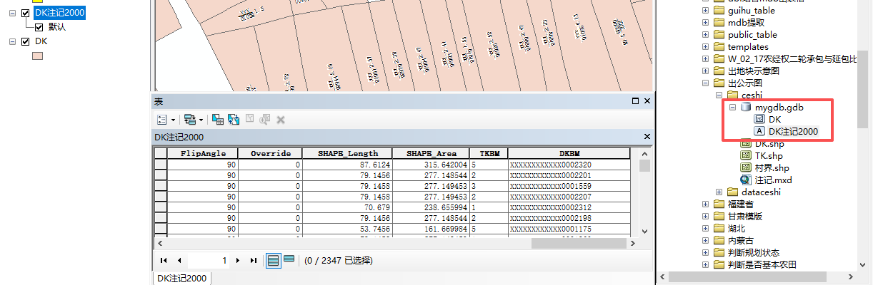 执行工具---2-生成注记,会创建地理数据库,将地块的矢量加入地理数据库,在数据库中生成"DK注记2000"。
