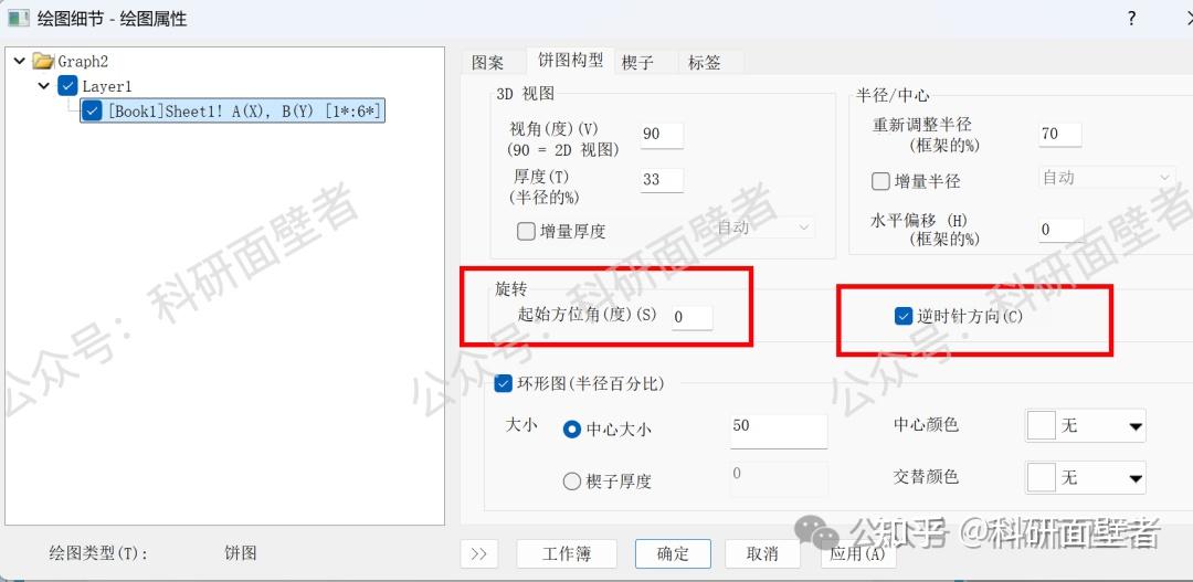 再次双击图像,在标签菜单页下依次修改如下设置:将字体颜色设置为自动,格式勾选百分比,类别,然后再勾选自定义,位置勾选"与楔子位置相关联",径向选择为终点外部,径向偏移选择为30,勾选"若偏移超过显示 30%""延伸指引线到楔子",连接选择 2 段折线,宽度为 1.5: