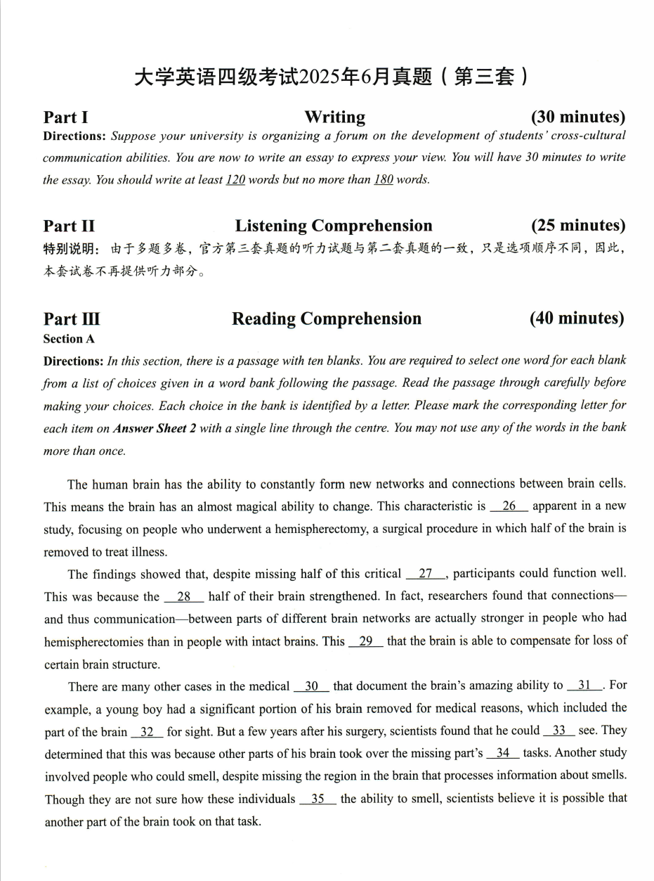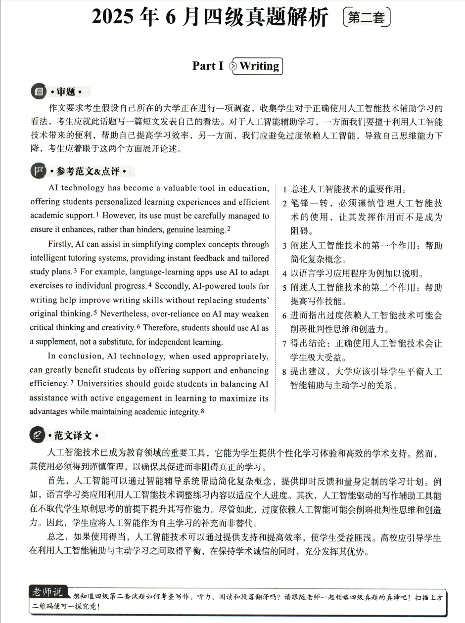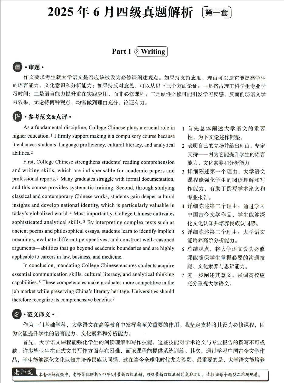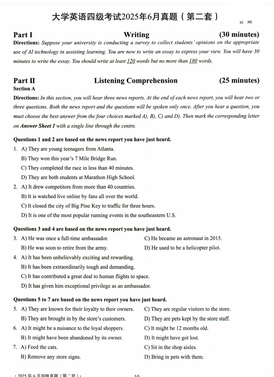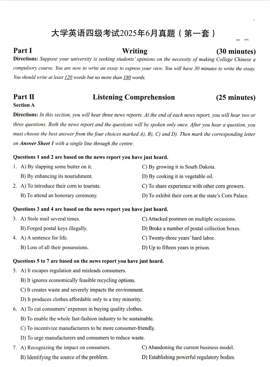 | 2025年6月英语四级真题及答案解析 ||