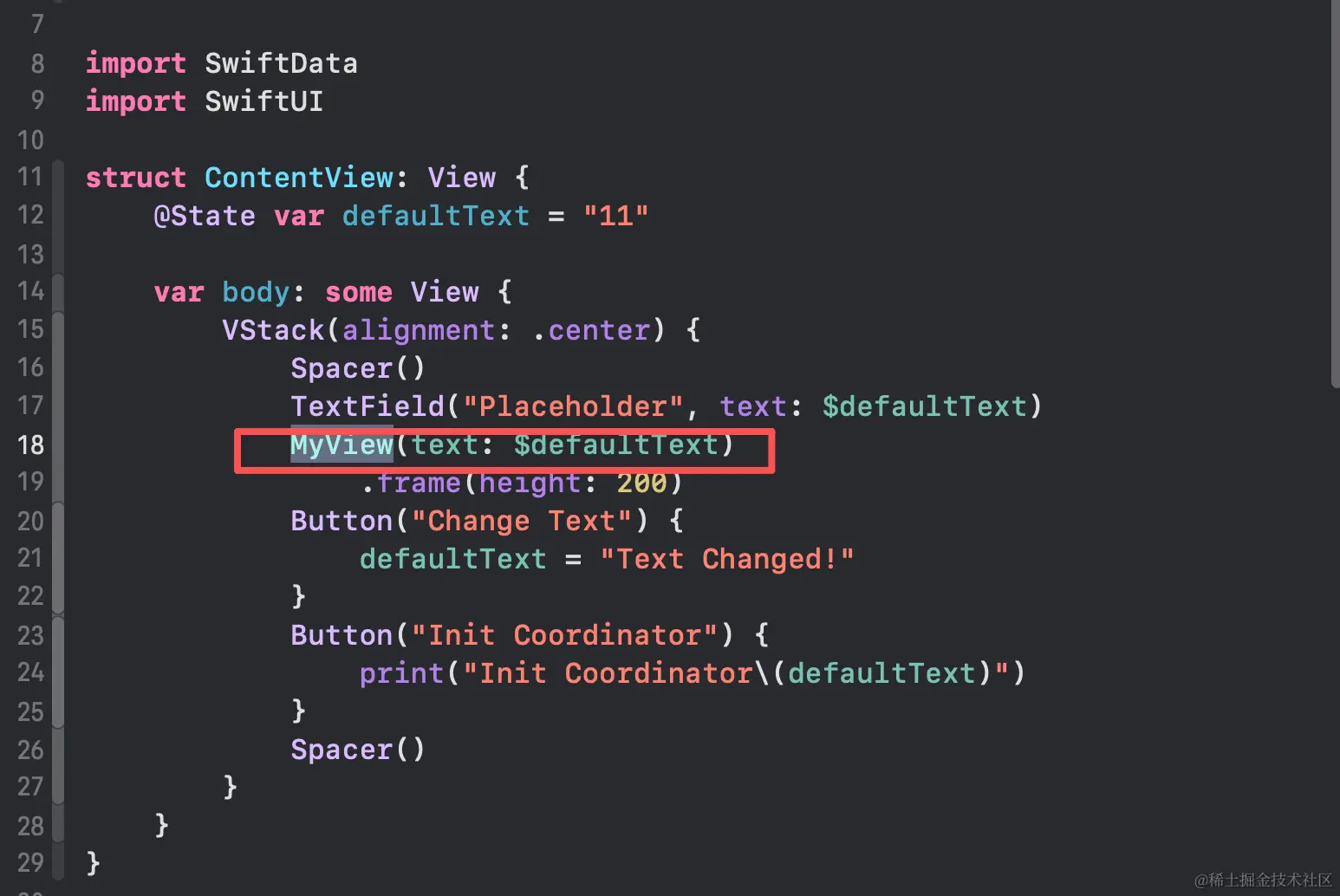 但是如果你使用swiftui中的TextField组件,你就会发现它已经实现类数据的双向绑定。