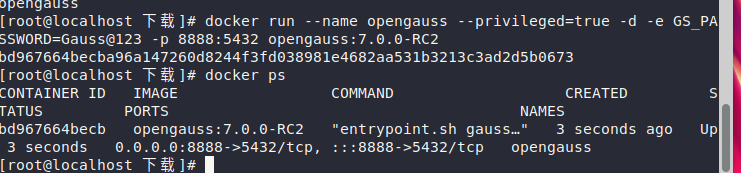 opengauss/opengauss:7.0.0-RC # 镜像名称:版本