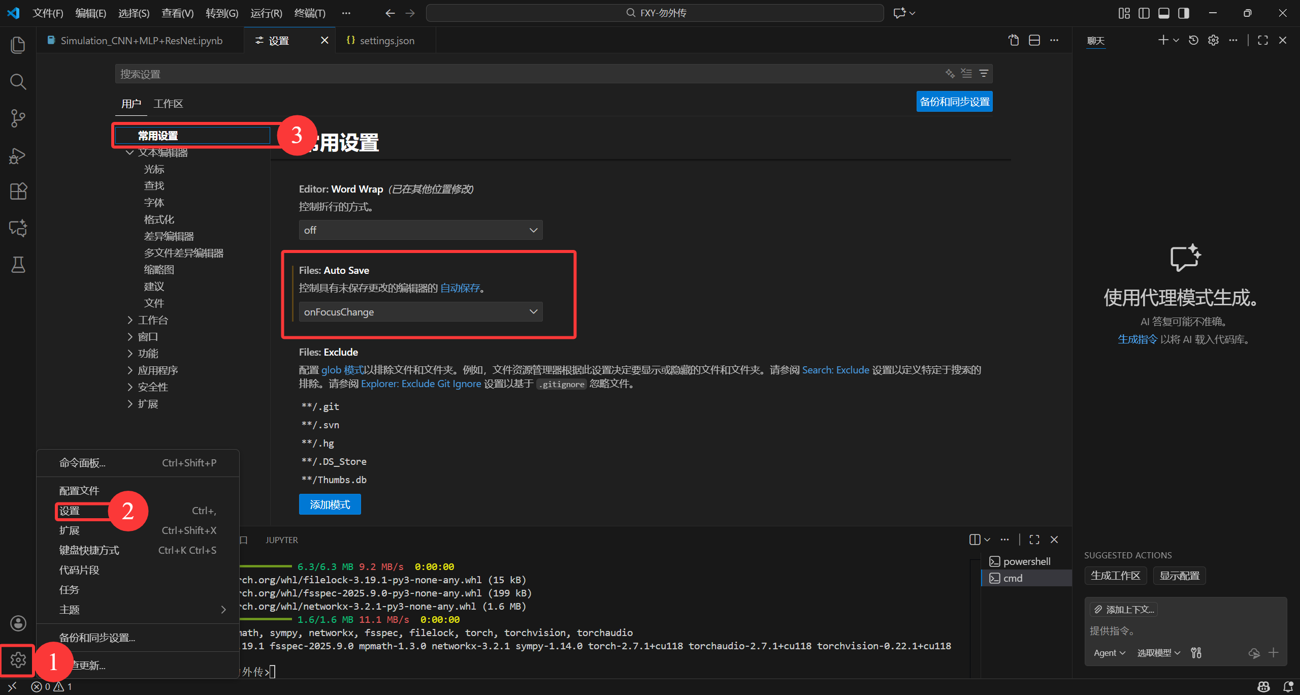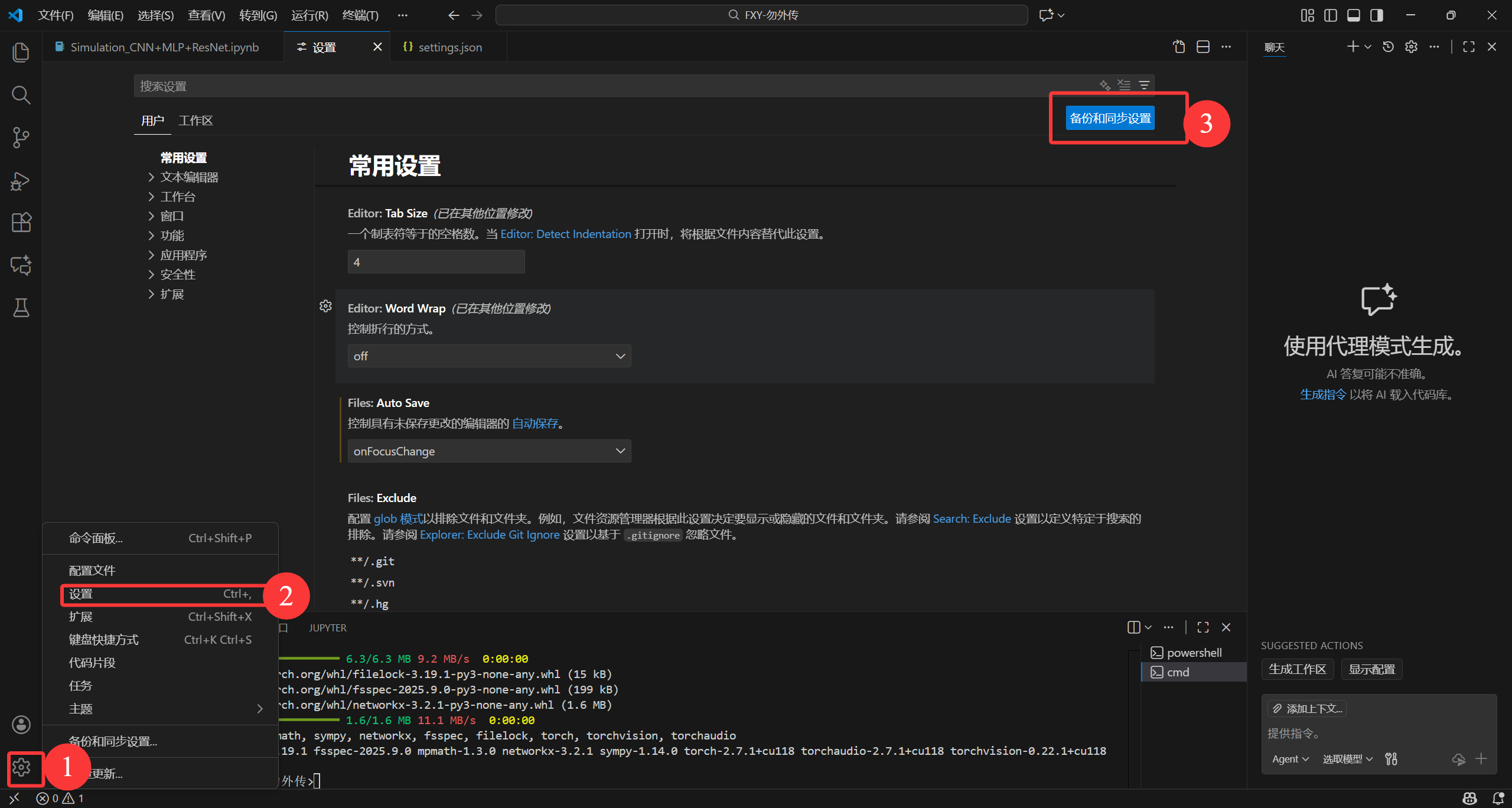 完整settings.json 如图所示(仅供参看,具体原因见step2的注释)