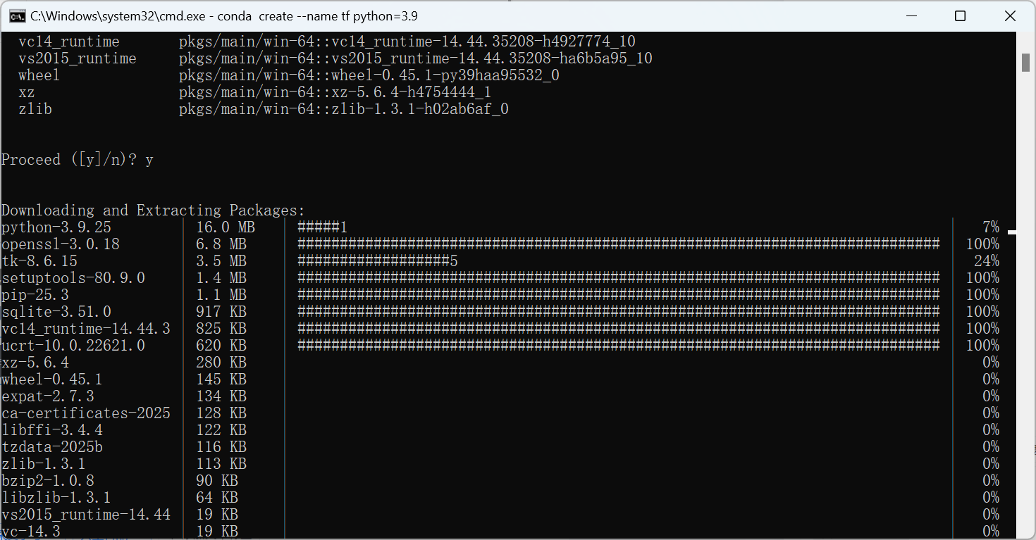 step4:在step3终端中输入以下指令,安装Tensorflow-GPU所需安装包