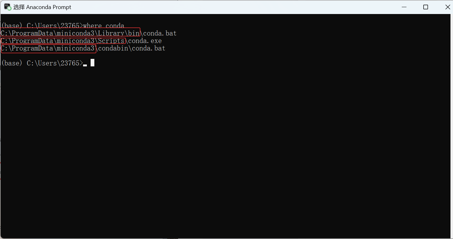 conda info来验证当前环境是否正确启用。如果显示的环境是base或您期望的 Anaconda 环境,则表示配置成功。