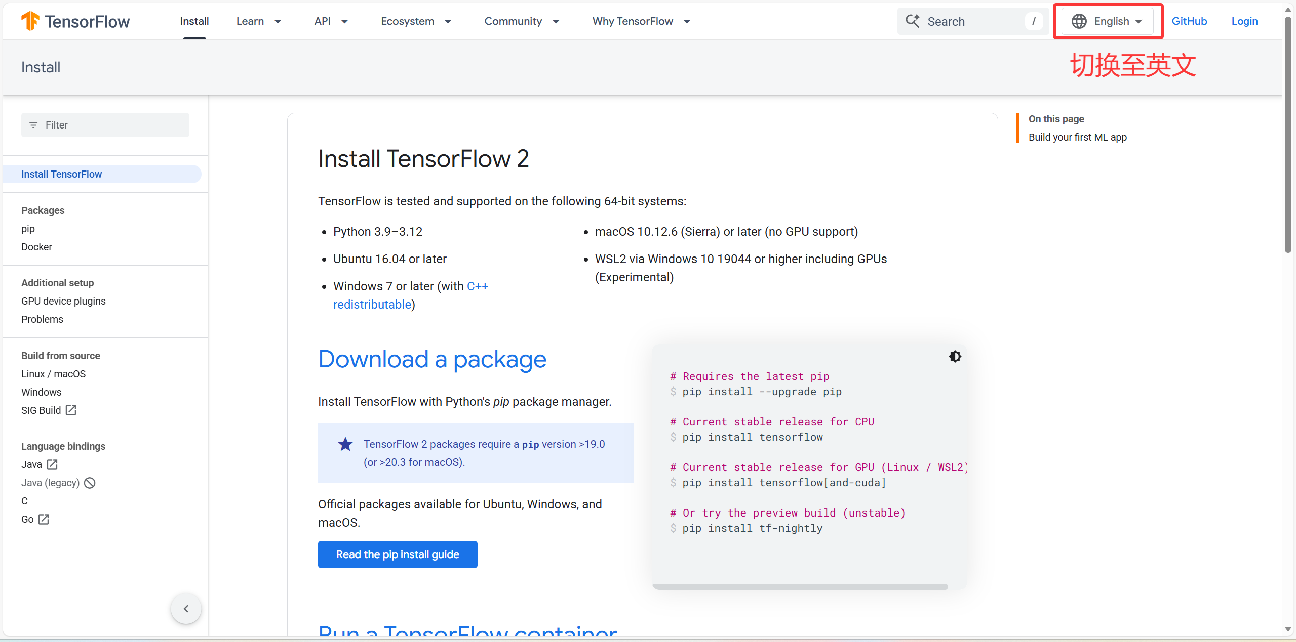 step1:进入tensorflow官网(Install TensorFlow 2)