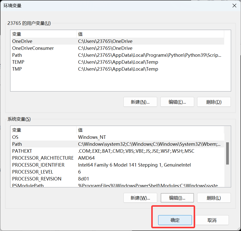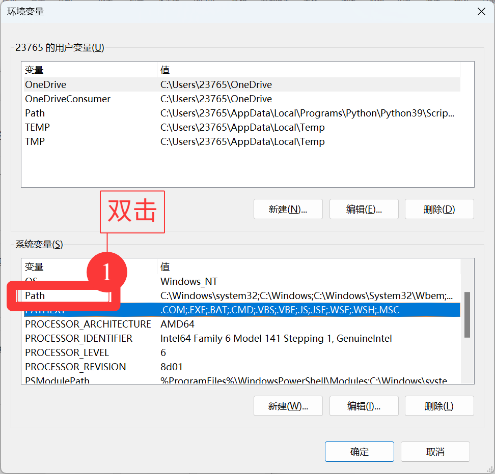 step3:双击path,安装以下步骤将step1中三个红色框中的内容添加至PATH中,即可