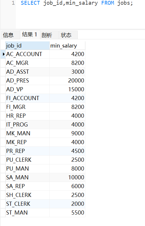 当选择字段用通配符 ' * ' 替换时,就会输出表中所有字段信息。