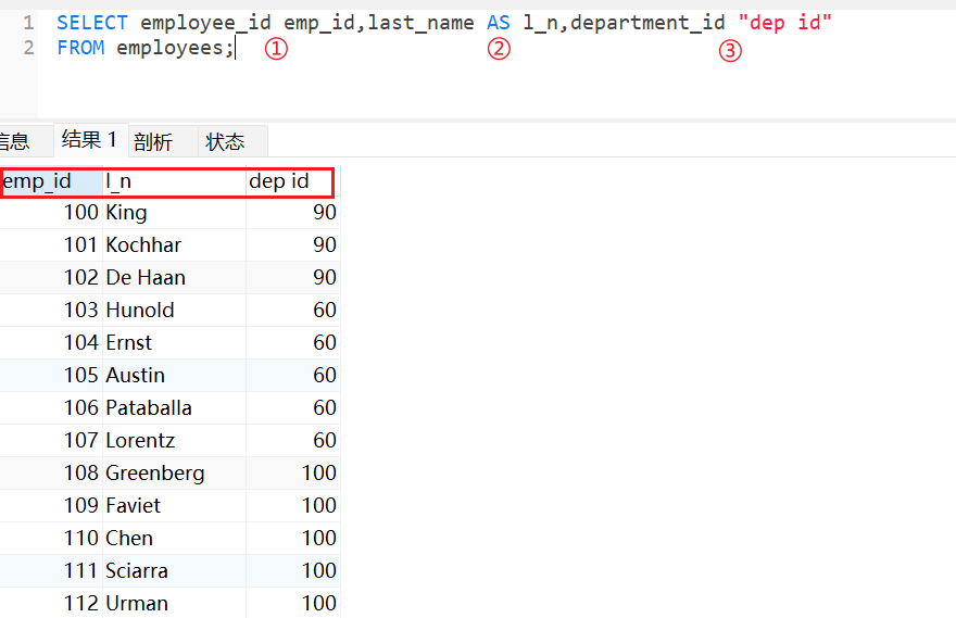 - 列的别名,尽量使用双引号(" "),并且不建议省略 as。
