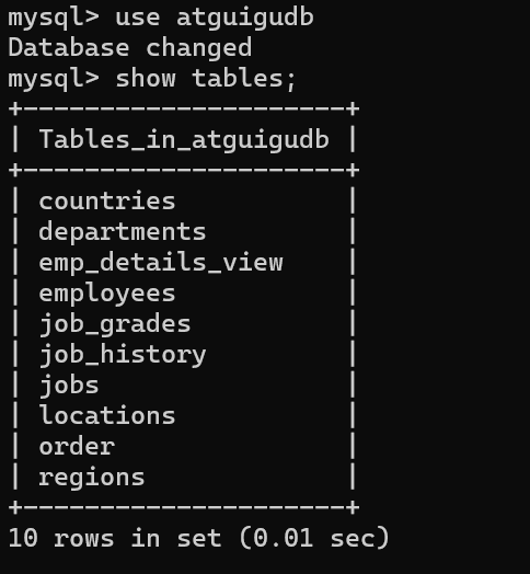 如果表名已经命名为了关键字、保留字等,查询时会出现错误,此时使用着重号( ` `)标记一下表名即可正常使用。