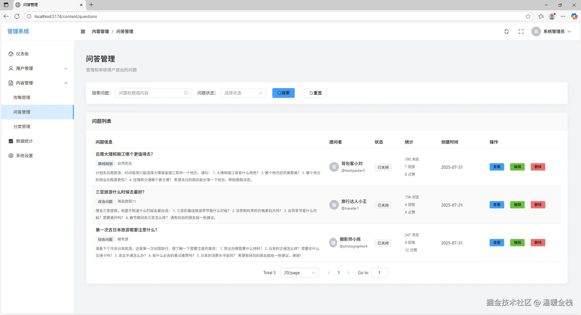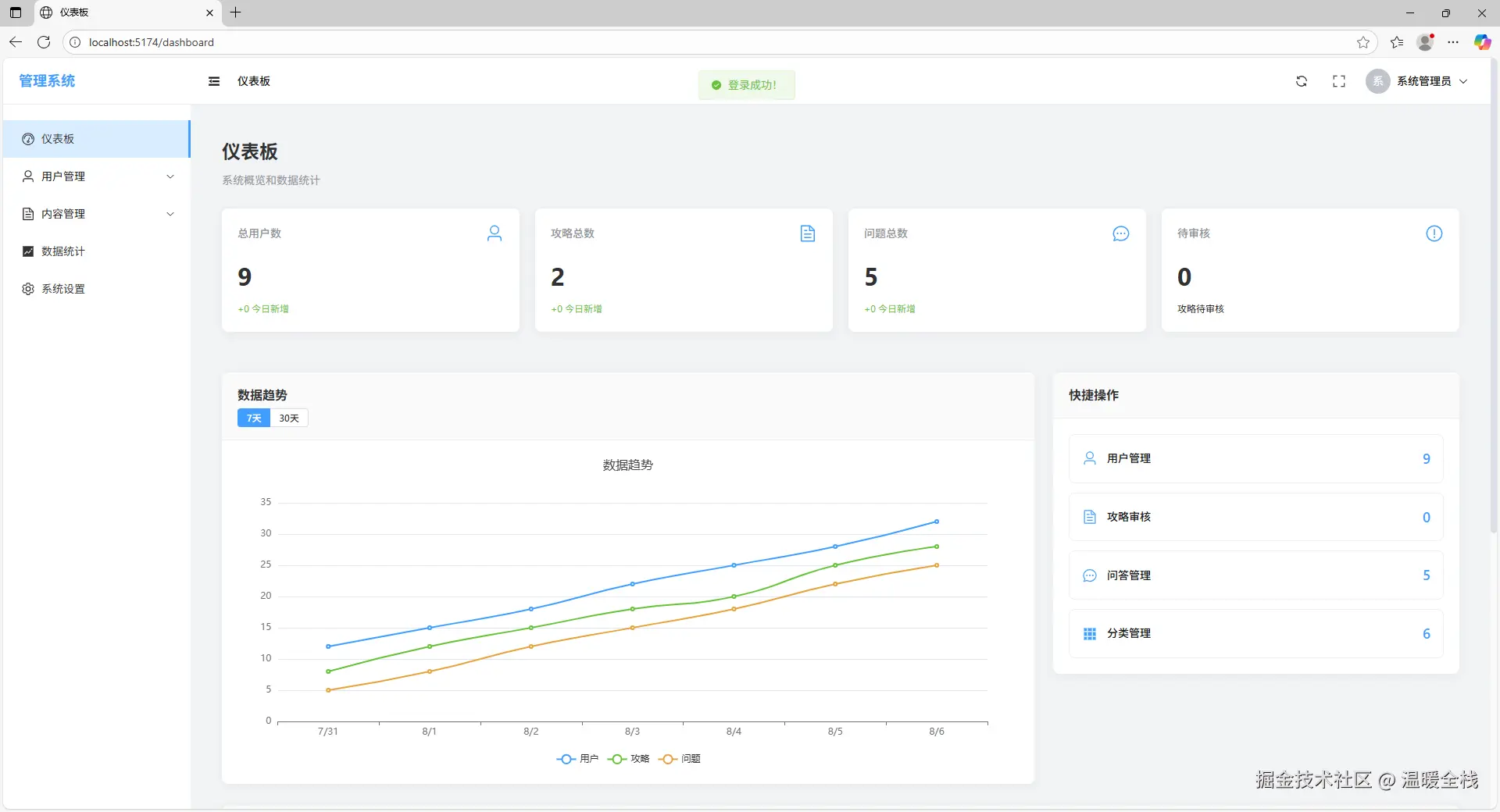 - 📋 内容管理:攻略审核、问答管理、分类管理