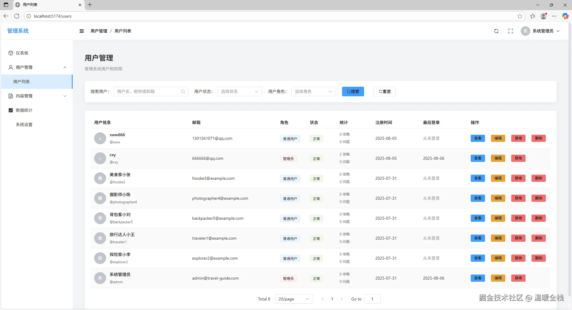 - 👥 用户管理:用户列表、状态控制、权限管理