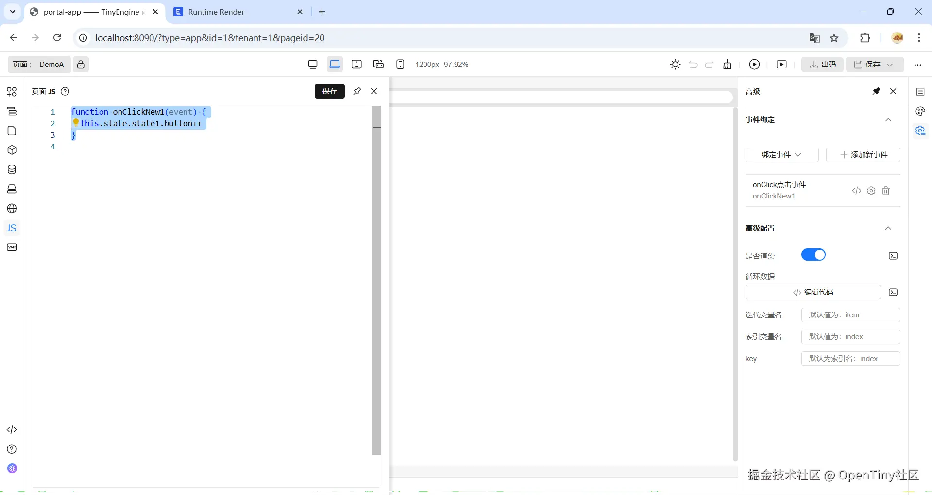 3). 在"页面 JS"中添加方法 onClickNew1: