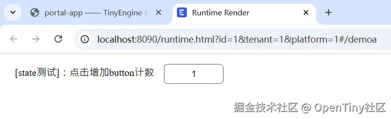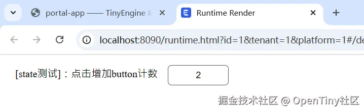 this.state.state1.button++; - Vue 响应式系统检测到 state 变化,触发 TinyButton 文本重新渲染;