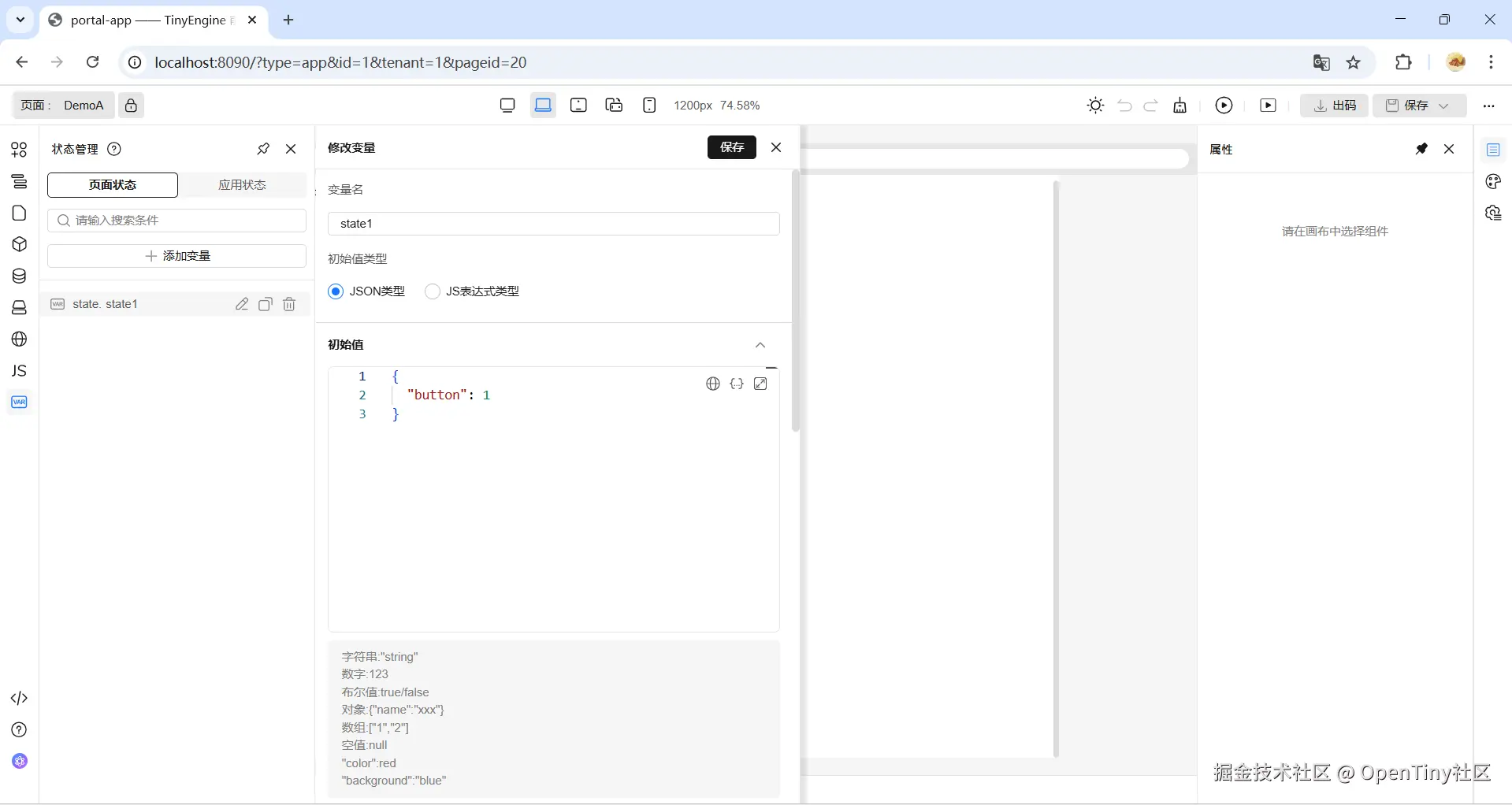 1). 创建页面 DemoA,并添加页面状态 state1: