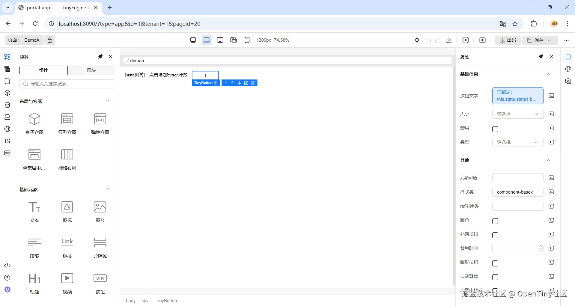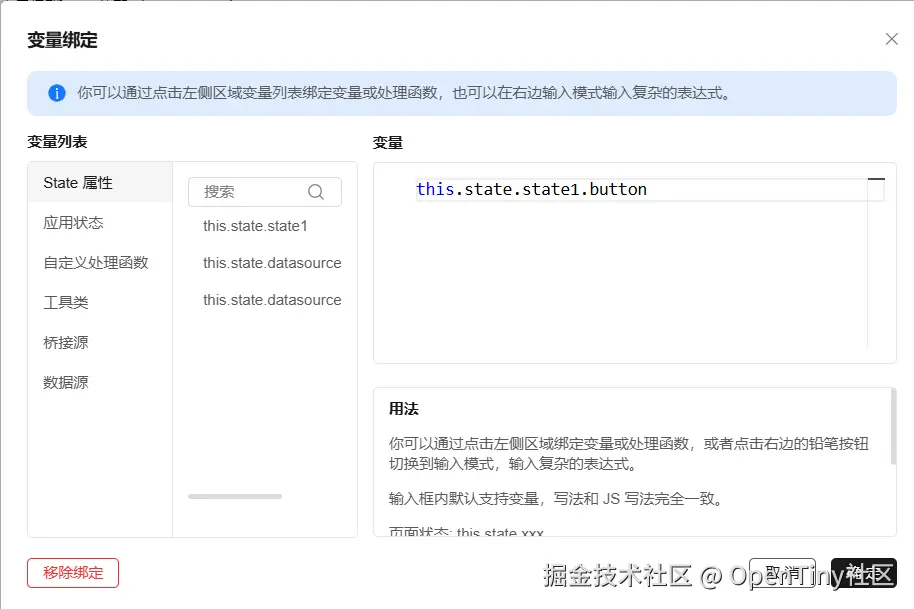 text绑定表达式this.state.state1.button; - TinyButton 的