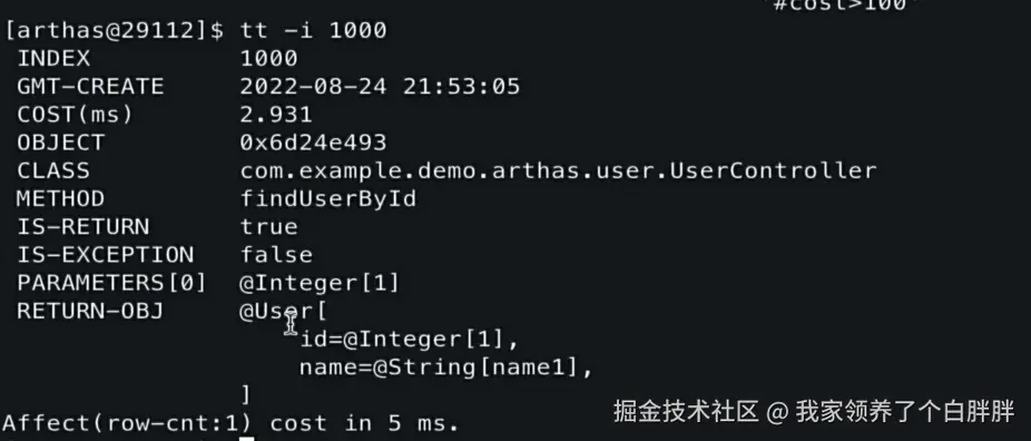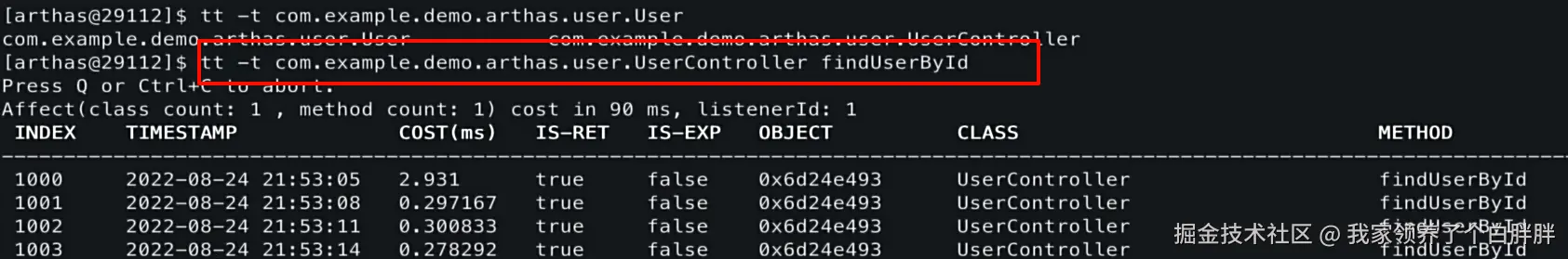 tt -i 1000 查看1000访问时候的请求参数 返回值 异常等信息 tt -p -i 1000 回放重新调用 显示返回值 异常信息等