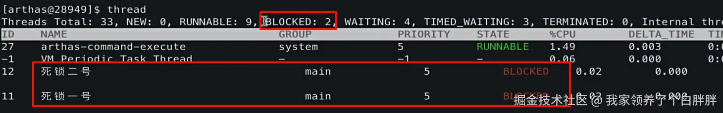 thread 查看死锁线程数 BLOCKED是死锁线程数量