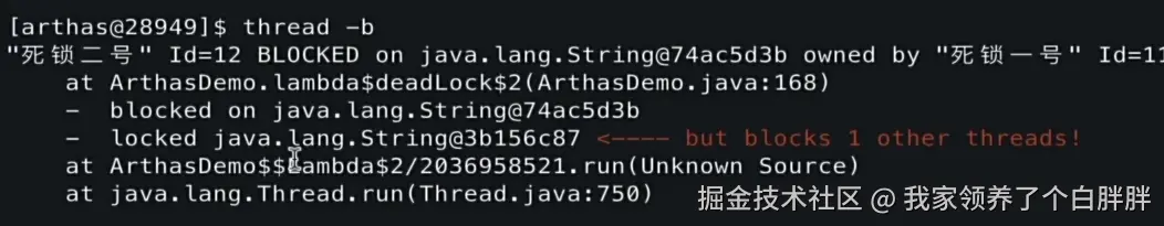 thread -b 直接查看死锁信息 抢占什么死锁资源