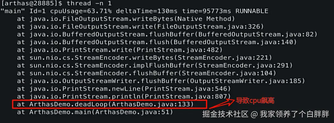 thread -n 1 线程使用率最高的一个 定位哪一行代码造成的cup飙高