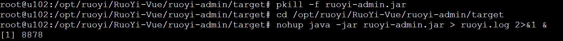 nohup java -jar ruoyi-admin.jar > ruoyi.log 2>&1 &
