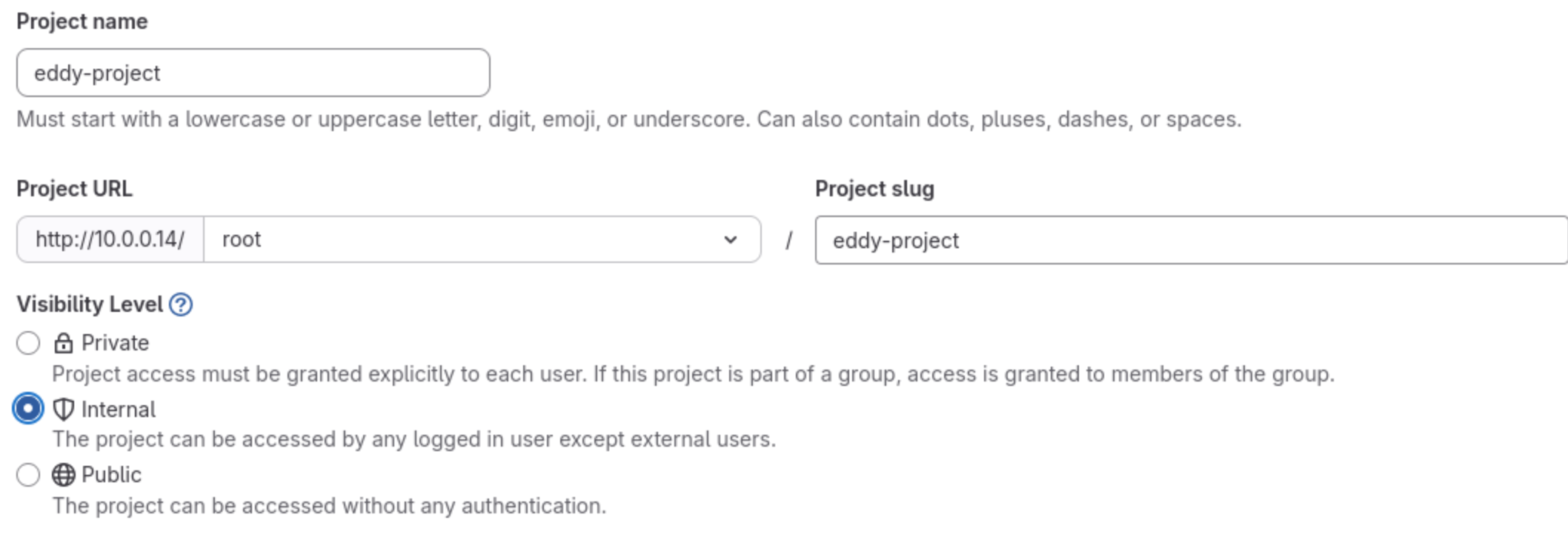 Visibility Level: 选择可见性级别(Private/Internal/Public)