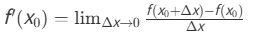 存在,则称f(x) 在x0处可导,f′(x0) 为导数。
