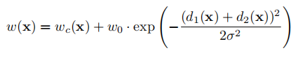 上面公式w(x)是这个像素位置的权重,计算公式入下图: