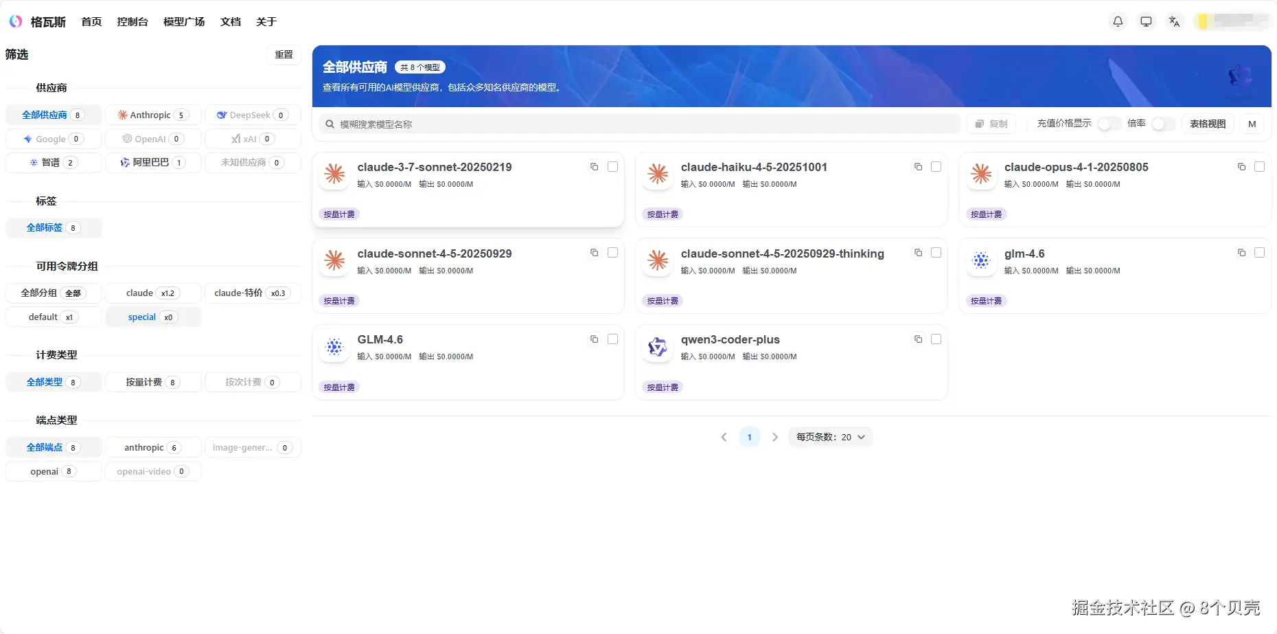 如果你也有上述困扰,那么我最近发现的这个格瓦斯AI模型中转站,或许能成为你的"终极解决方案"。它就像一个AI模型的"超级商场",让我用一个账户、一个接口,以极低的成本调用几乎所有主流和前沿模型。